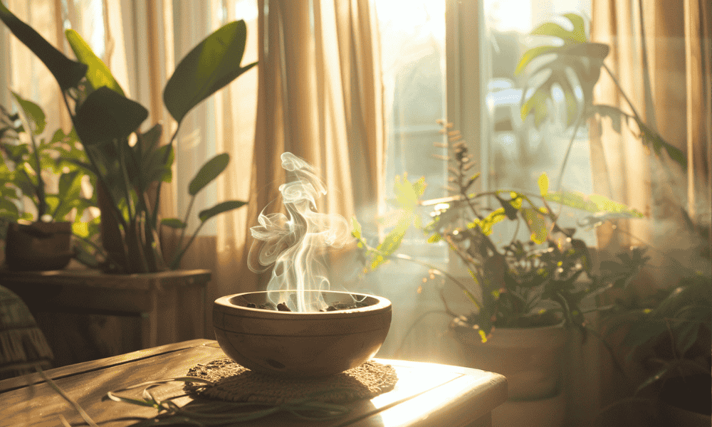 • 每週一次:點燃聖木或鼠尾草,讓煙霧在房間角落輕輕繞一圈。